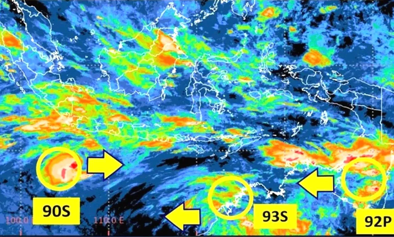 Ketiga bibit siklon tersebut adalah Bibit Siklon Tropis 90S, 93S, dan 92P, yang masing-masing berada di wilayah berbeda, namun memiliki dampak yang signifikan terhadap kondisi cuaca dan perairan Indonesia.