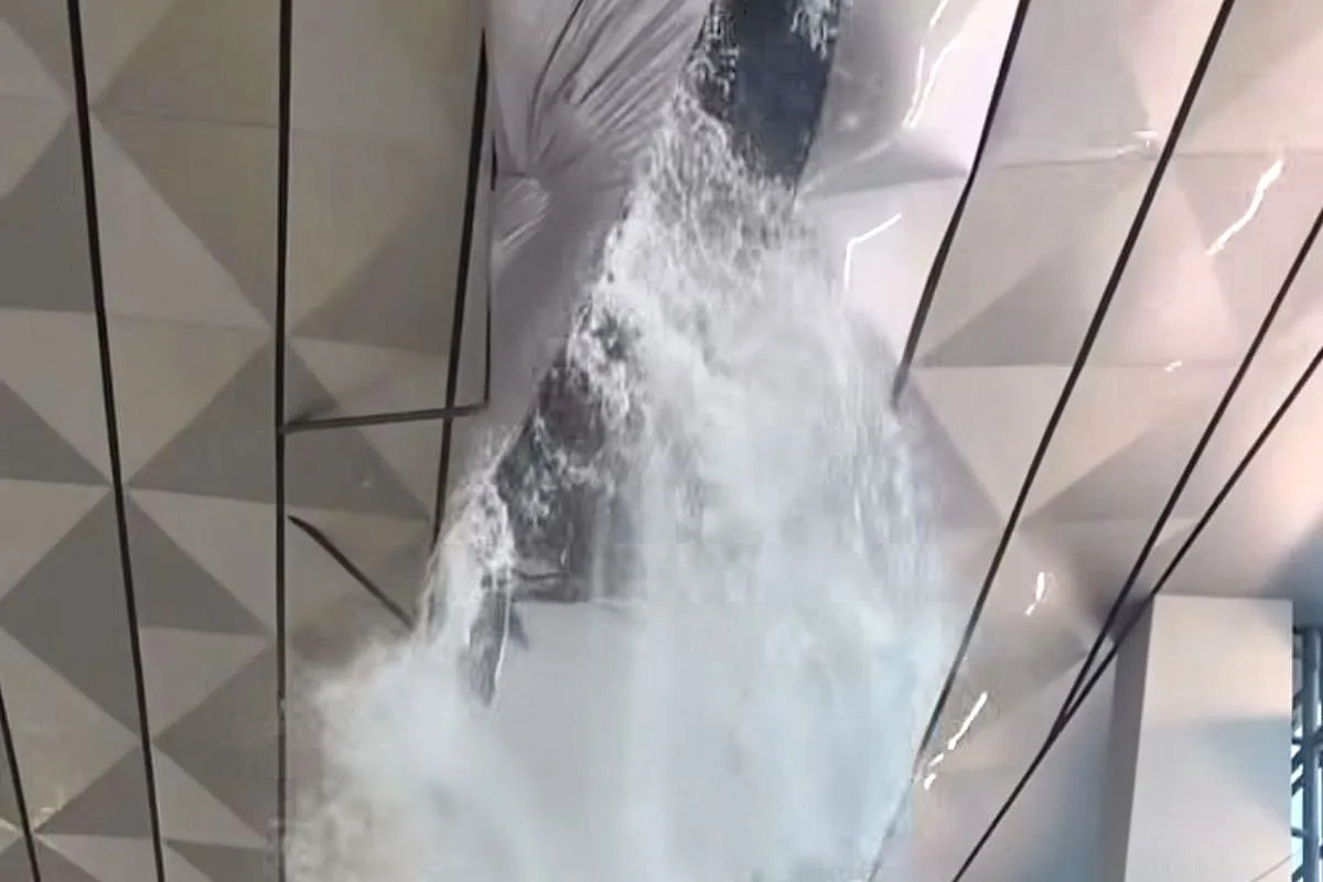 Dalam video yang beredar luas, tampak air hujan tumpah ke dalam ruang tunggu penumpang, menyebabkan kerusakan pada beberapa fasilitas elektronik yang terpapar air hujan.
