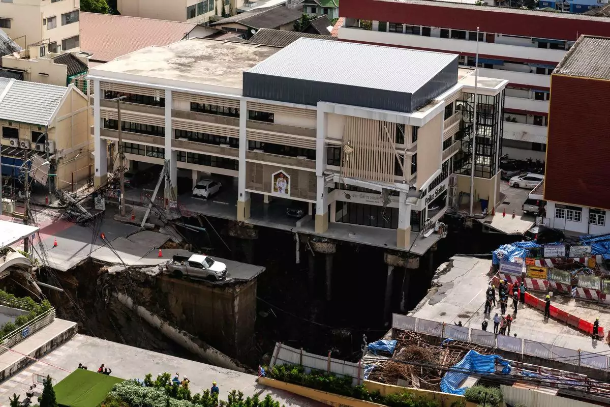 Suriyachai menambahkan bahwa material tanah yang terkikis kemudian tersedot ke dalam area pembangunan stasiun MRT di bawah tanah, yang diduga menjadi pemicu utama jalanan ambles secara tiba-tiba.