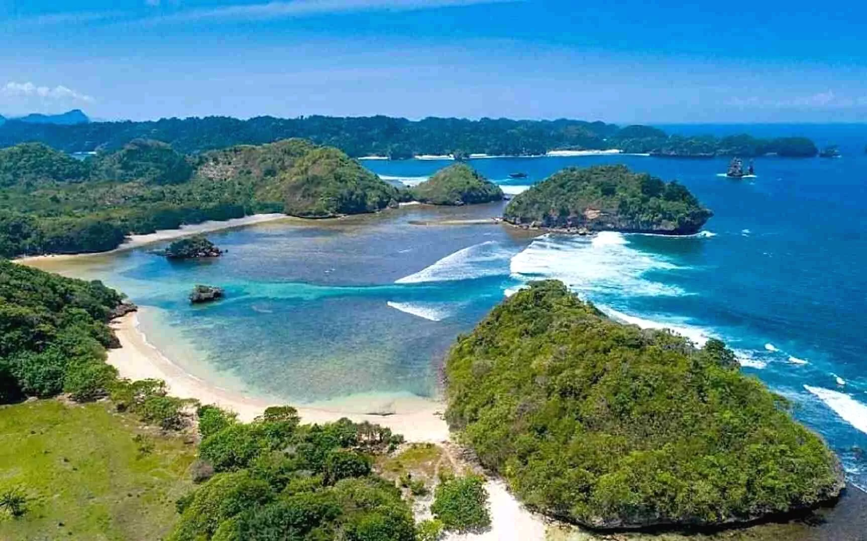 Pantai ini sering disebut sebagai “Raja Ampat-nya Jawa Timur” karena gugusan pulau-pulau kecil yang menghiasi lautan birunya, memberikan kesan yang sangat mirip dengan keindahan alam yang terdapat di Raja Ampat, Papua.