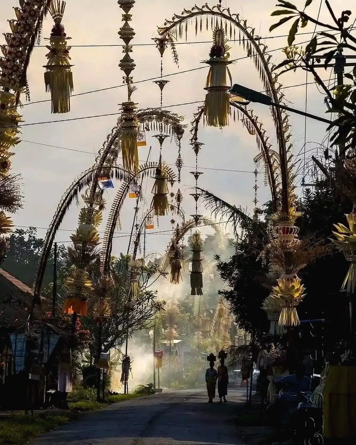 “Pemasangan penjor ini harus jauh dari jaringan listrik. Standarnya 2,5 meter, jangan sampai dekat dengan kawat listrik,” kata Elashinta.