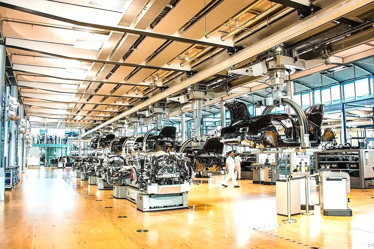 Pabrik Transparent Factory di Dresden, yang dibuka pada tahun 2002, dikenal karena desain arsitekturnya yang unik dengan dinding kaca transparan yang memberikan pengunjung pandangan langsung ke dalam proses produksi mobil.